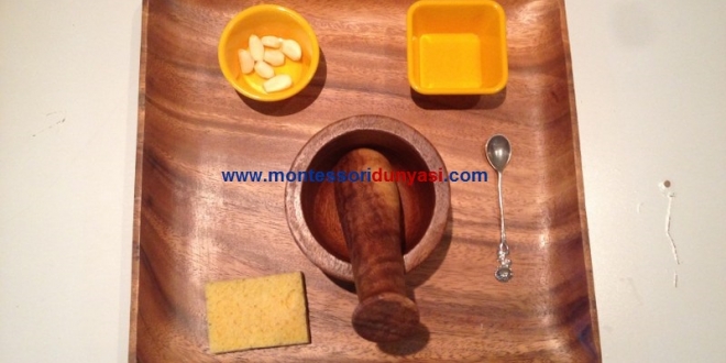 Materyal: 2 tane kase, havan, kaşık, sarımsak, sünger, tepsi