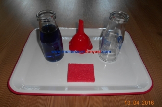 Yaş : 3+ Amaçlar: İnce motor becerilerinin ve el göz koordinasyonunun gelişimi, konsantrasyon, öz kontrol, muhakeme yeteneği, yazıya hazırlık, düzen, bağımsızlık, sabır, detaya özen, su ile çalışmaya özen, dikkat ...
